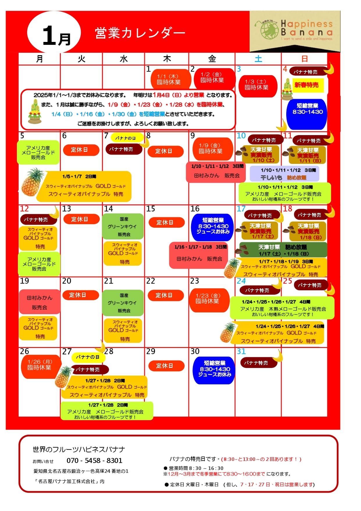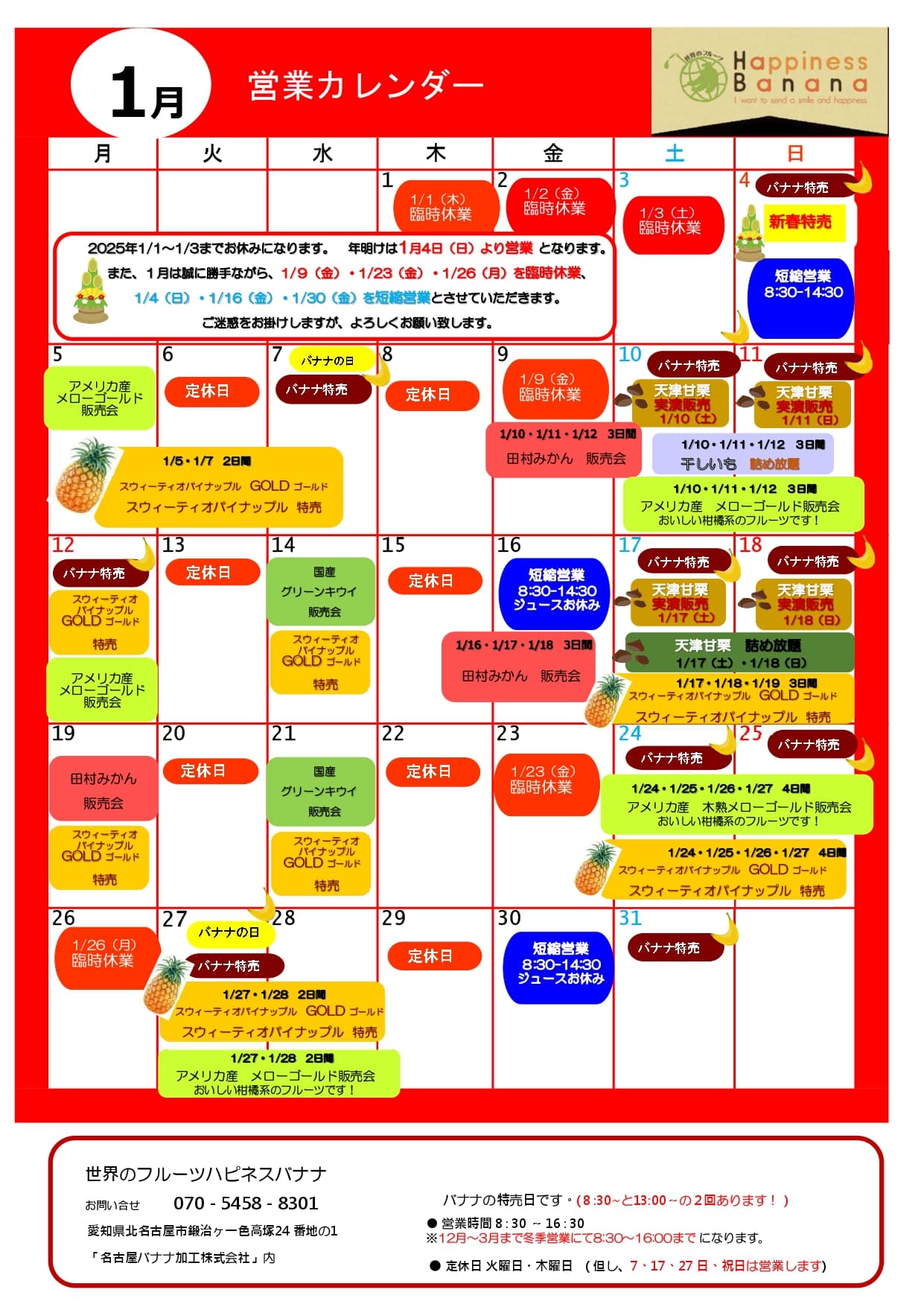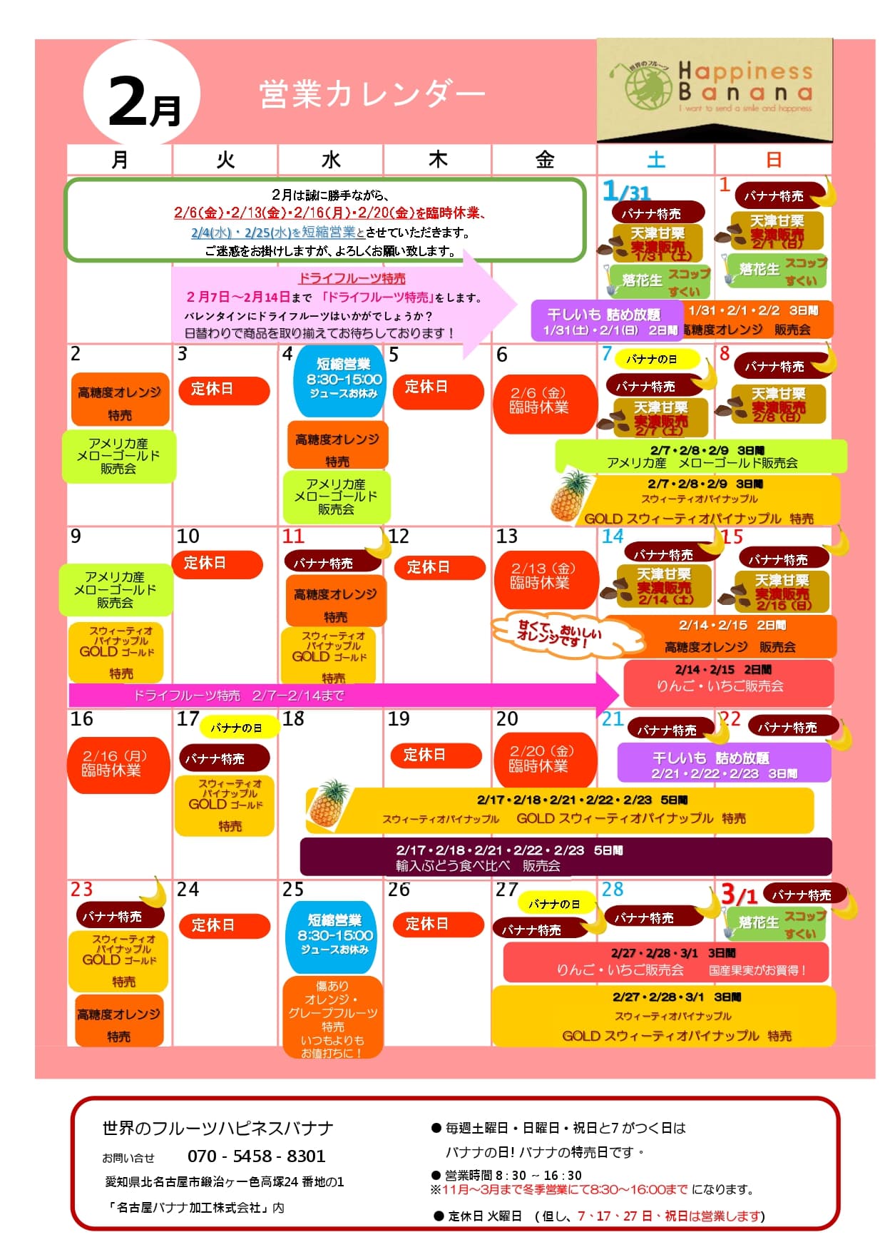 2月の営業カレンダー